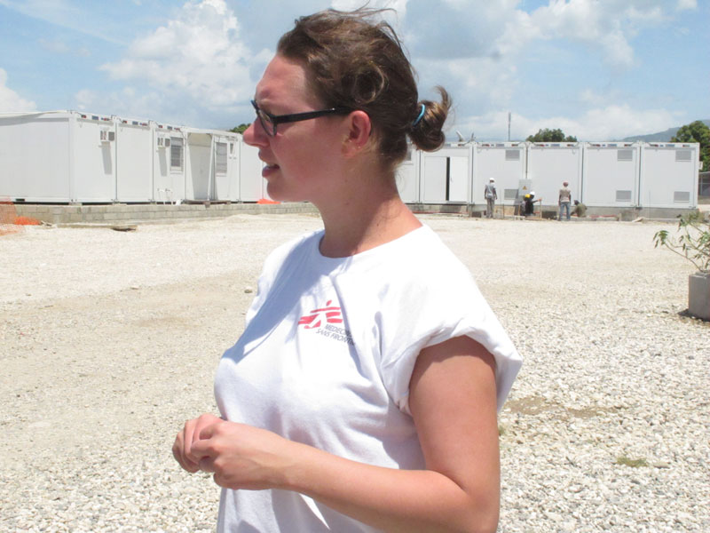 De eerste persoon die ik zie wanneer ik het ziekenhuis binnenkom, is Astrid, een jonge logistiek medewerkster op haar eerste missie met Artsen Zonder Grenzen. Onder een broeierige, loden zon staat ze te discussiëren met één van haar Haïtiaanse collega's. Eigenlijk één van de bewakers, voor wie ze verantwoordelijk is. “Dit is belangrijk werk,” legt ze uit. “De bewakers staan in voor de veiligheid van het ziekenhuis, maar ze moeten er ook op toezien dat de hygiëneregels nageleefd worden. Zij moeten ervoor zorgen dat niemand binnendringt met een wapen of uniform en zo de neutraliteit van deze plek verzekeren. Bovendien moeten ze erop toezien dat iedereen de handen wast bij het binnenkomen. Al die dingen zijn van fundamenteel belang wanneer we weer een stijging van het aantal gevallen van cholera in de hoofdstad vaststellen.”