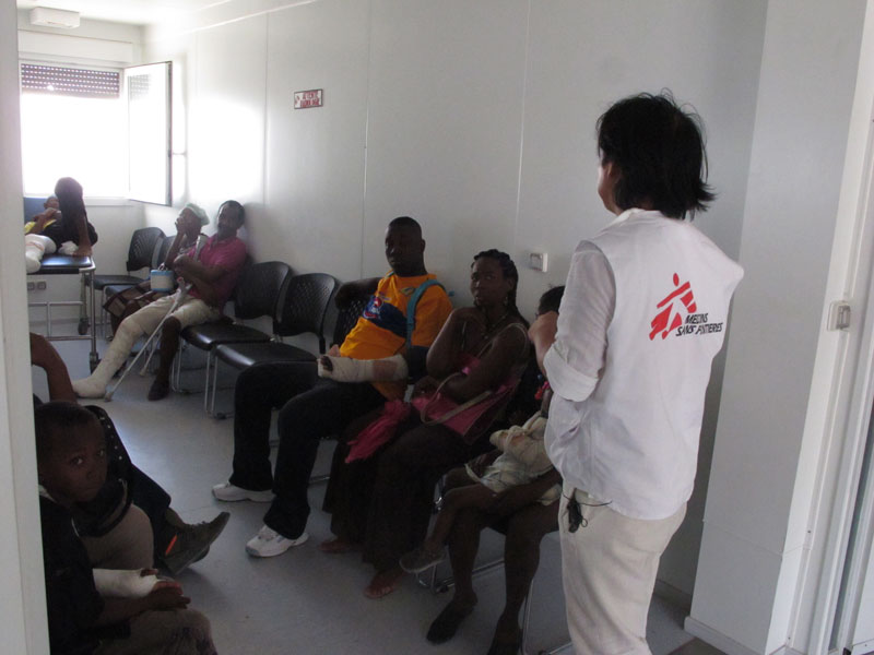 Het is er snikheet, de geuren die er hangen kunnen behoorlijk doordringend zijn en de patiënten zitten met velen op de enkele bankjes in de wachtzaal. Een aantal jaren geleden was dit nog een nachtclub en een carwash. De patiënten blijven hier maximaal drie dagen. De meest dringende gevallen kunnen in het centrum verzorgd worden en eventueel een kleine operatie ondergaan. De andere worden doorverwezen (lees: overgebracht) naar andere medische voorzieningen in de stad, indien mogelijk van Artsen Zonder Grenzen. Het ziekenhuis van Tabarre is daar één van. Daar worden patiënten naartoe gestuurd die dringend nood hebben aan viscerale of orthopedische chirurgie.